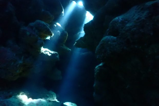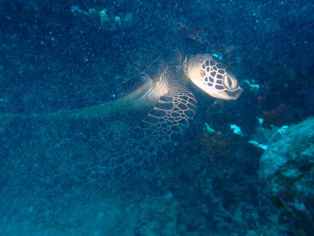 太陽もカンカン照りでアオウミガメは日陰にゴー。