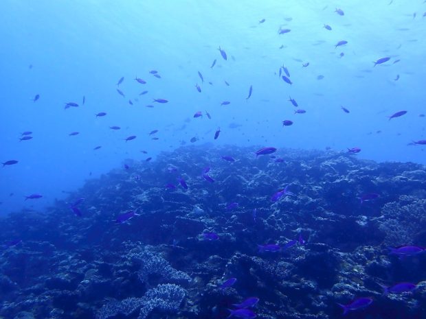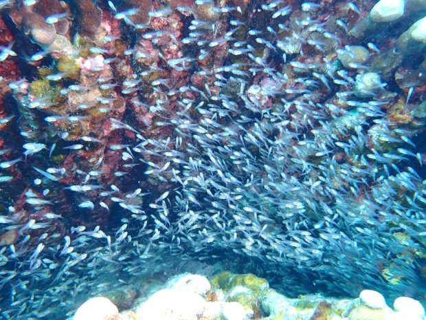 ハナダイも体の小さい幼魚があちこちで群れています。