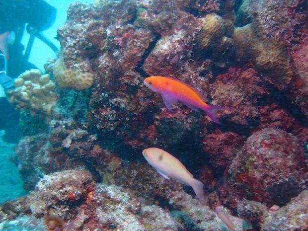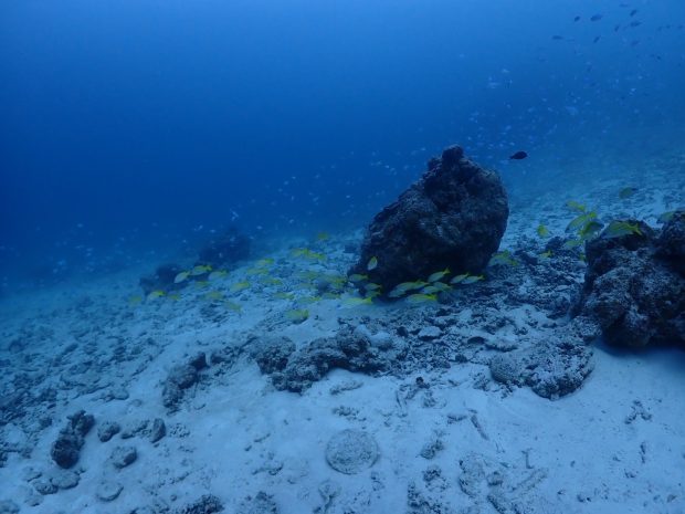 ミツボシクロスズメダイか、うねりで壊れてなければ結構上出来。