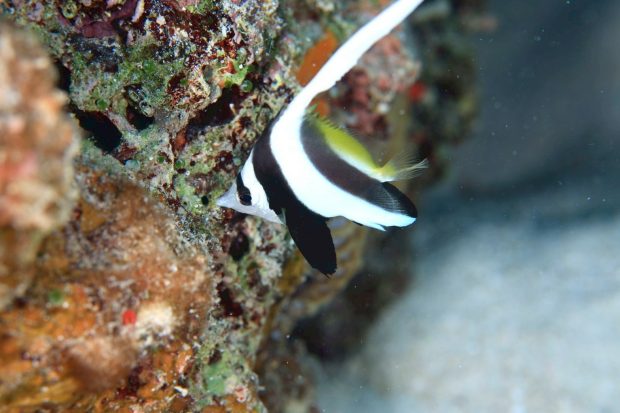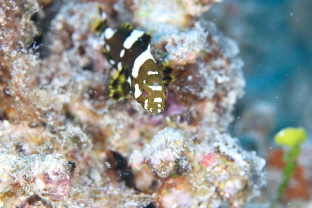 ヒレの模様もとても綺麗なシロブチハタ幼魚。