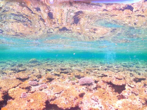 浅瀬のオキナワスズメダイの群れは無敵ですから!