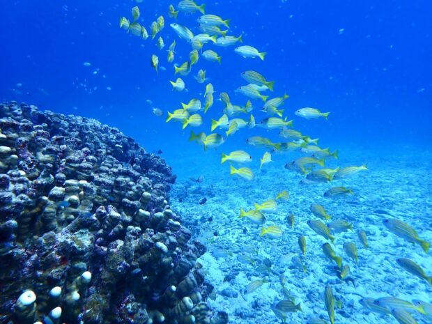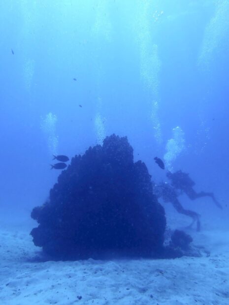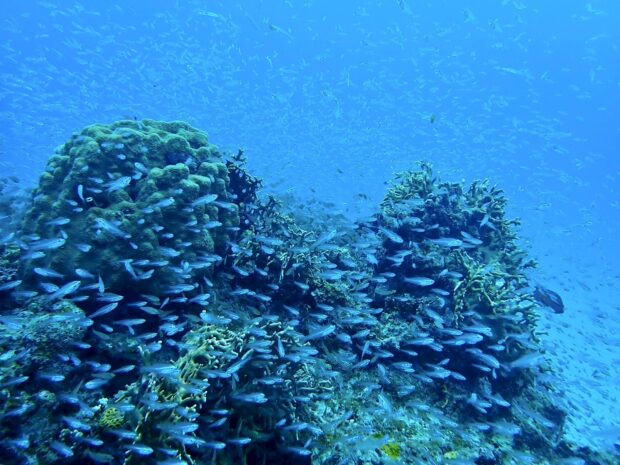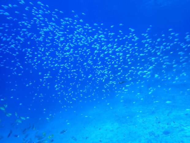 入るとすぐに小さいイソマグロが約30匹の群れで登場!