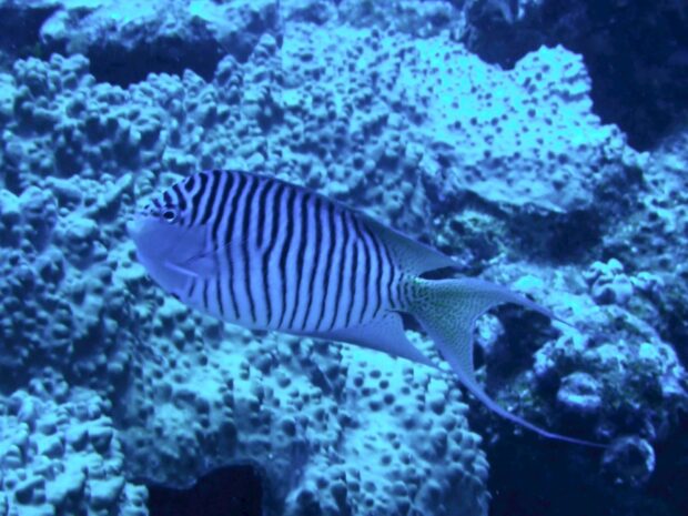 白と黒のしましまに、長い背ビレが愛くるしい。