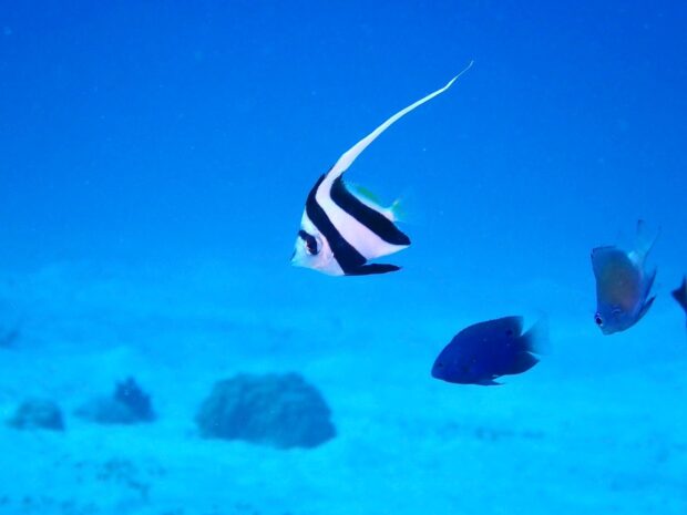 青い海に白い砂地にはやっぱりデバスズメダイですよね!
