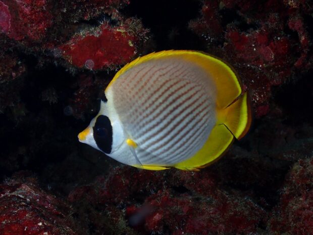パンダみたいな顔がかわいいクラカケチョウチョウ。