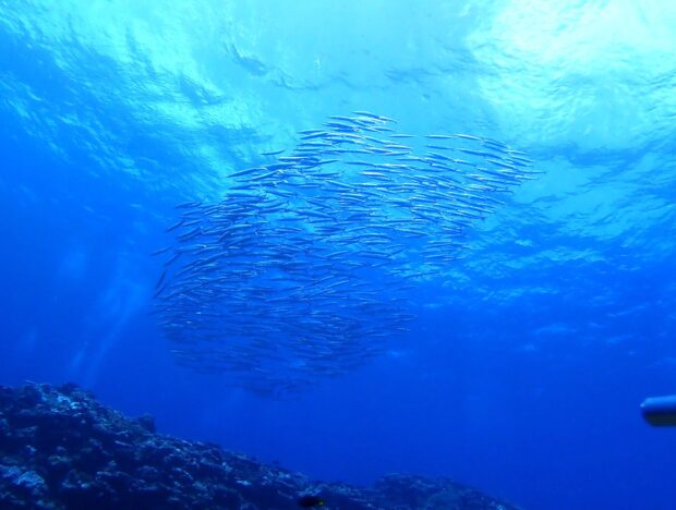すると、マンタのメインの根に居たのは “ホソカマスの群れ” ( ゚Д゚)