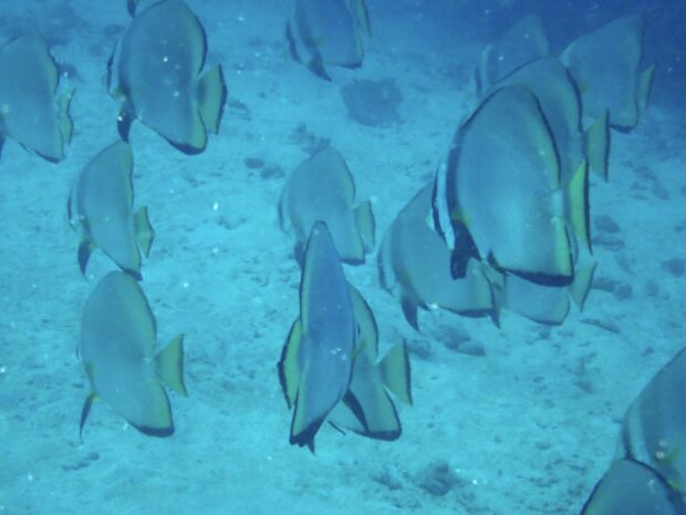 地形の中にはフタホシアトヒキテンジクダイが群れていまして