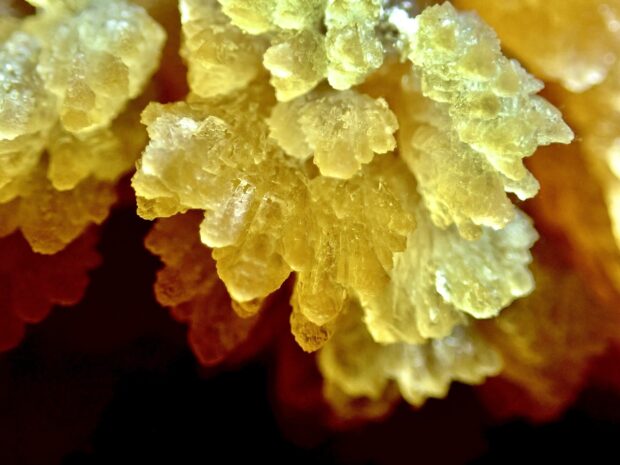 ヘルズベルって鍾乳石的なものがあるんですが、その下に結晶があって、マクロで撮るとめっちゃ綺麗。